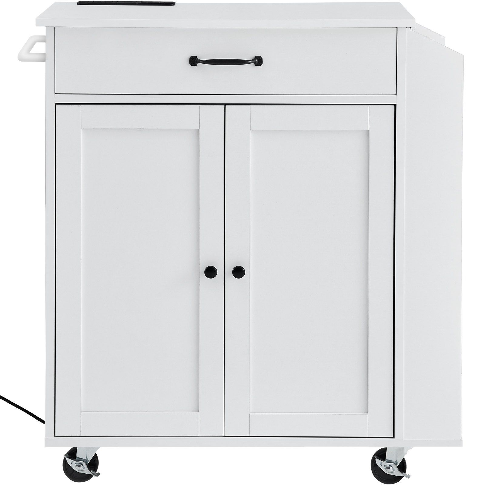 This kitchen island provides extra space for your culinary creations. It includes a power strip with 3 outlets and a long power cord, making it convenient to charge various kitchen appliances.