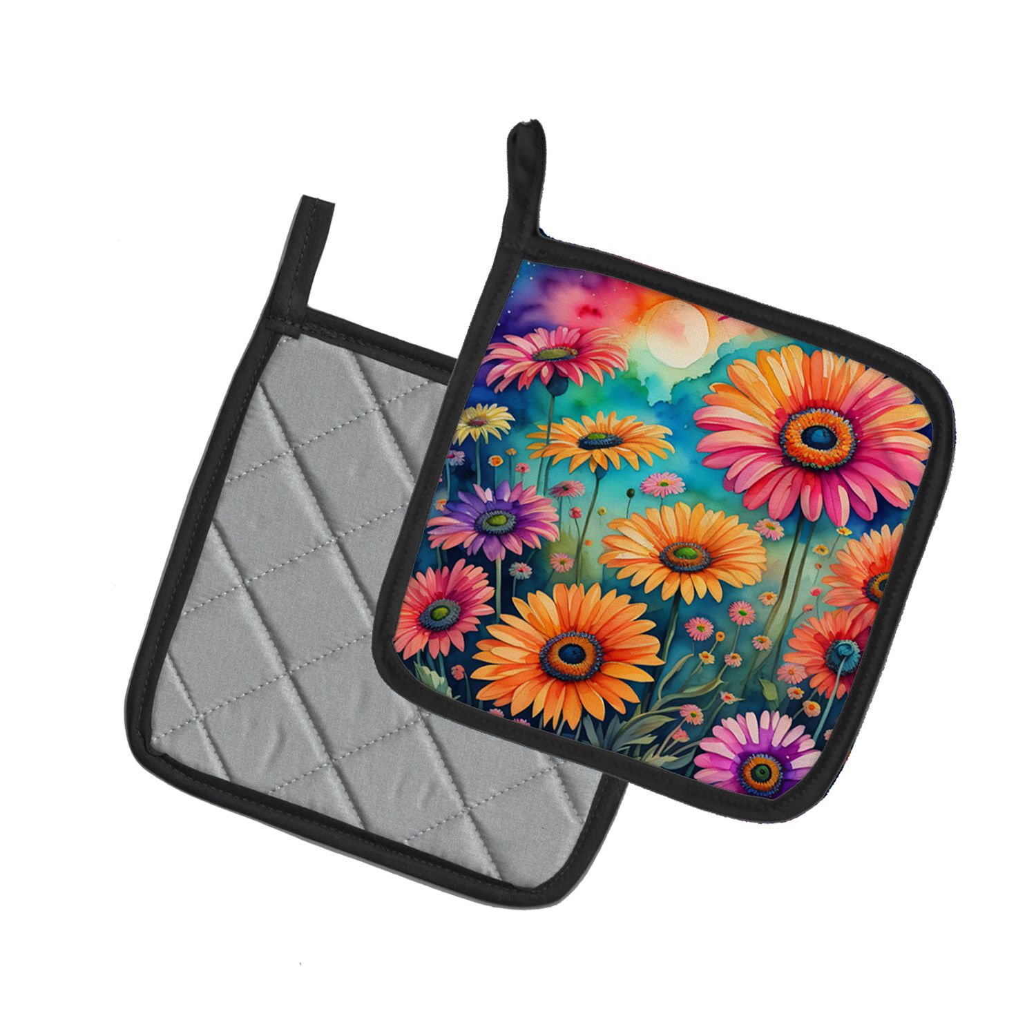 Home > Colorful Gerbera Daisies Pair of Pot Holders Kitchen Heat Resistant Pot Holders Sets Oven Hot Pads for Cooking Baking BBQ, 7 1/2 x 7 1/2