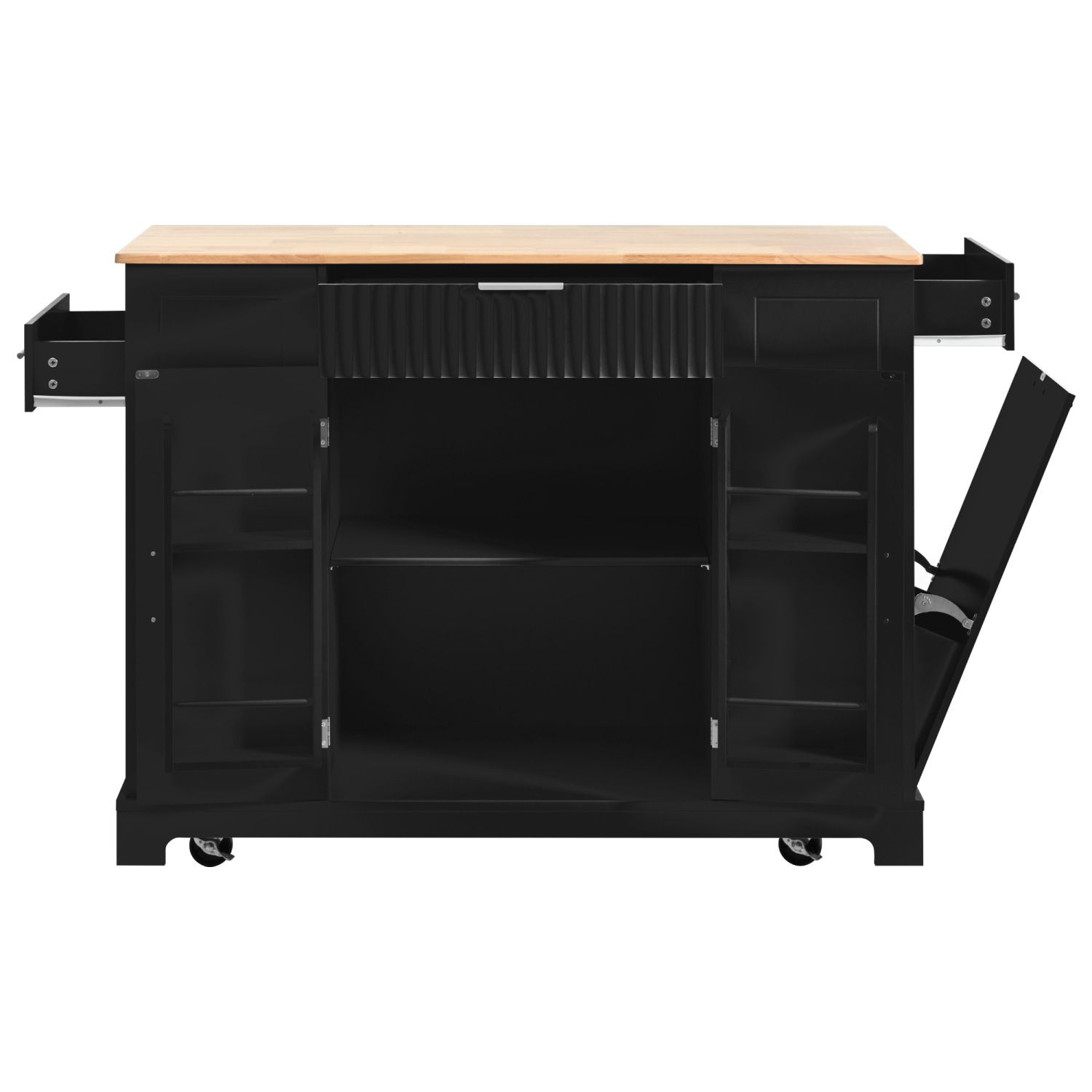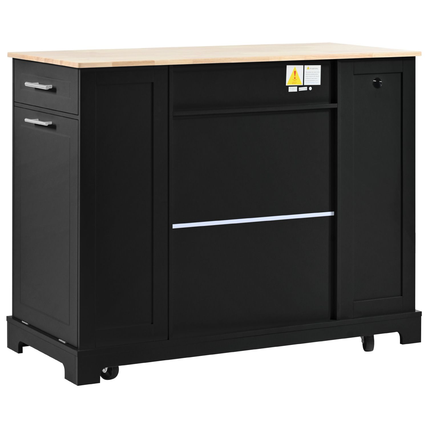 | Highlights | [Internal Storage Rack][47.25" x 20.5" Wide Rubber Wood Kitchen Table][Tilt-out Trash Can Cabinet for 10-gallon Trash Can][Unique Rounded Hinge][Adjustable Cabinet Shelves and Open Side Rack Shelves][5*360°Smooth Hidden Wheels][Power Outlet 2AC 1USB + 1 Type C][3 Doors + 3 Drawers][Fluted Large Drawer with Full-extension Rail][Eco-friendly manufactured P2 MDF Board] |