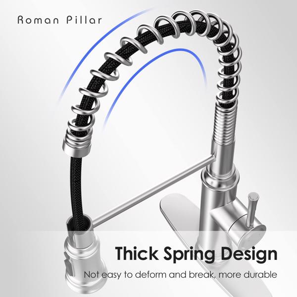 Kitchen Faucet - Spring Kitchen Sink Faucet with 3 Modes Pull Down Sprayer; Single Handle&Deck Plate for 1or3 Holes; 360° Rotation; Spot Resist Stainl Kitchen Faucet - Spring Kitchen Sink Faucet with 3 Modes Pull Down Sprayer; Single Handle&Deck Plate for 1or3 Holes; 360° Rotation; Spot Resist Stainl Kitchen Faucet - Spring Kitchen Sink Faucet with 3 Modes Pull Down Sprayer; Single Handle&Deck Plate for 1or3 Holes; 360° Rotation; Spot Resist Stainl