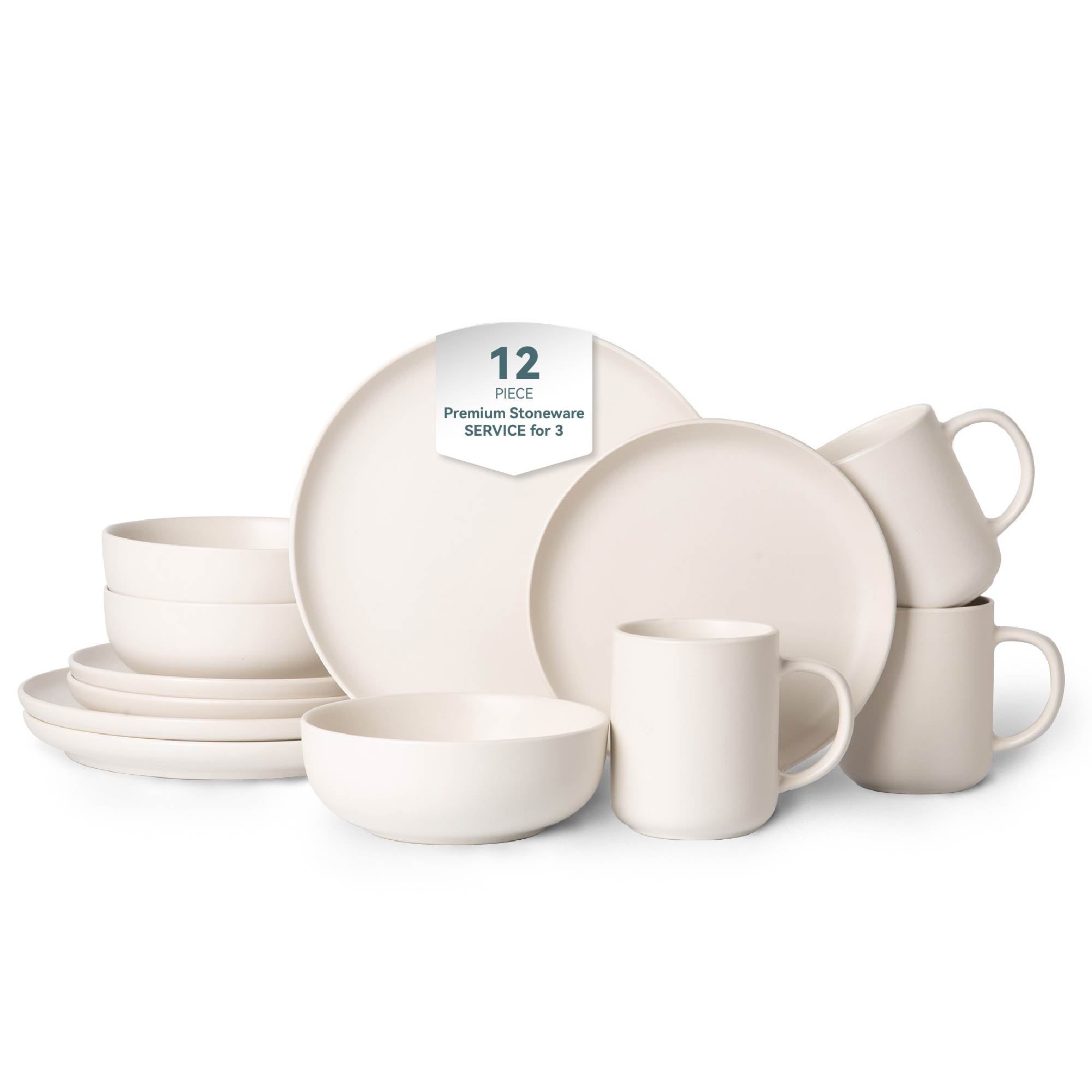 Home > 12-Piece Stoneware Dinnerware Sets with Mugs | Microwave & Dishwasher Safe | Non-Toxic Dinner Plates Bowls Set | Stackable Matte Glaze Kitchenware for