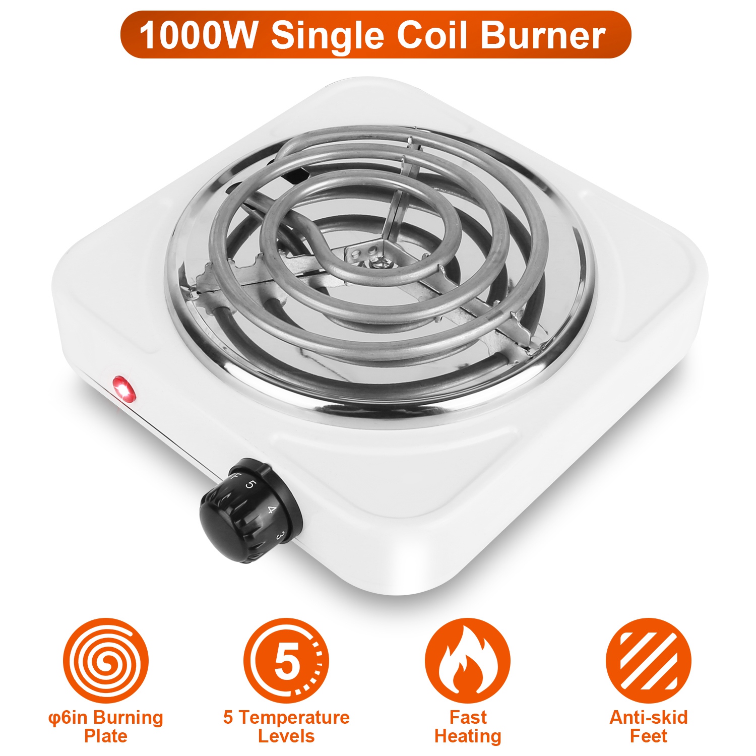Home > 1000W Electric Single Burner Portable Coil Heating Hot Plate Stove Countertop RV Hotplate with Non Slip Rubber Feet 5 Temperature Adjustments