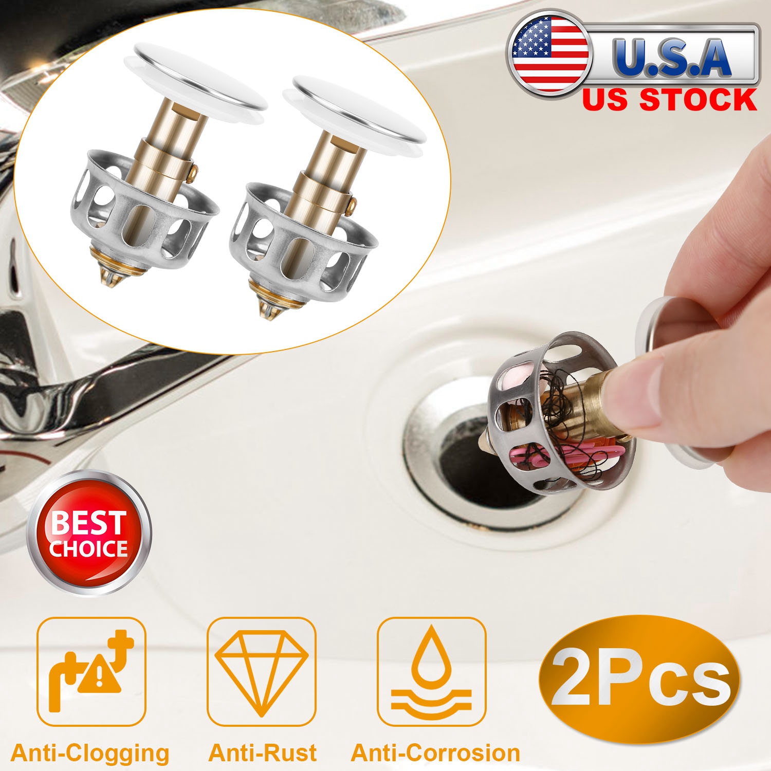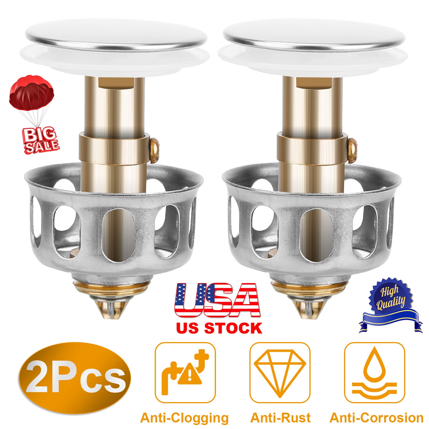Home > 2Pcs Sink Drain Plugs Wash Basin Bounce Drain Filter Pop Up Bathtub Sink Drain Stoppers Strainer W/ Basket